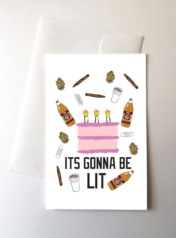 Turnt Up Lit Cake Happy Birthday Greeting Card, 40 oz, Xanax, Lean, Double Cup, Blunt -