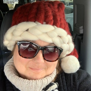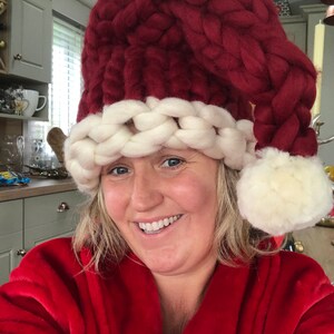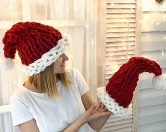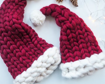 Knitted Santa Hat, Hand Knitted Chunky Christmas Hat, Unique Christmas Gift, Stocking filler festive holiday hat