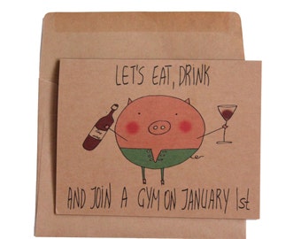 funny New Years card/ happy new year card/ cute holidays card/ funny christmas cards/ pig Christmas card