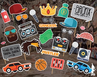 Hip Hop Photo Booth Props, 90s Party Photo Booth Props, hip-hop, rap music, rapper props, printable pary props, Digital download,party props