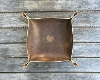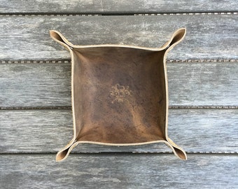 Valet Tray (Medium 8x8"). Rust Dublin Valet Tray. Corgi Leather Co. Travel Valet Tray (Rust) Catch All