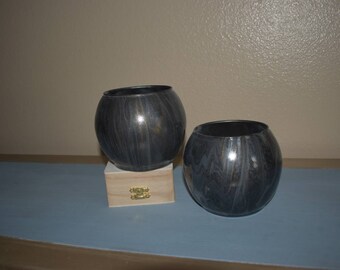Vintage Shawnee Kenwood Pottery Black And White Candle Holder Set