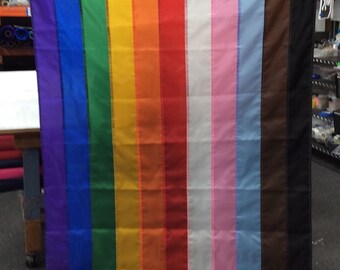 Using American materials, we meticulously sew each stripe of the 5-colored flag and take great care in making sure your flag will boldly show your pride.