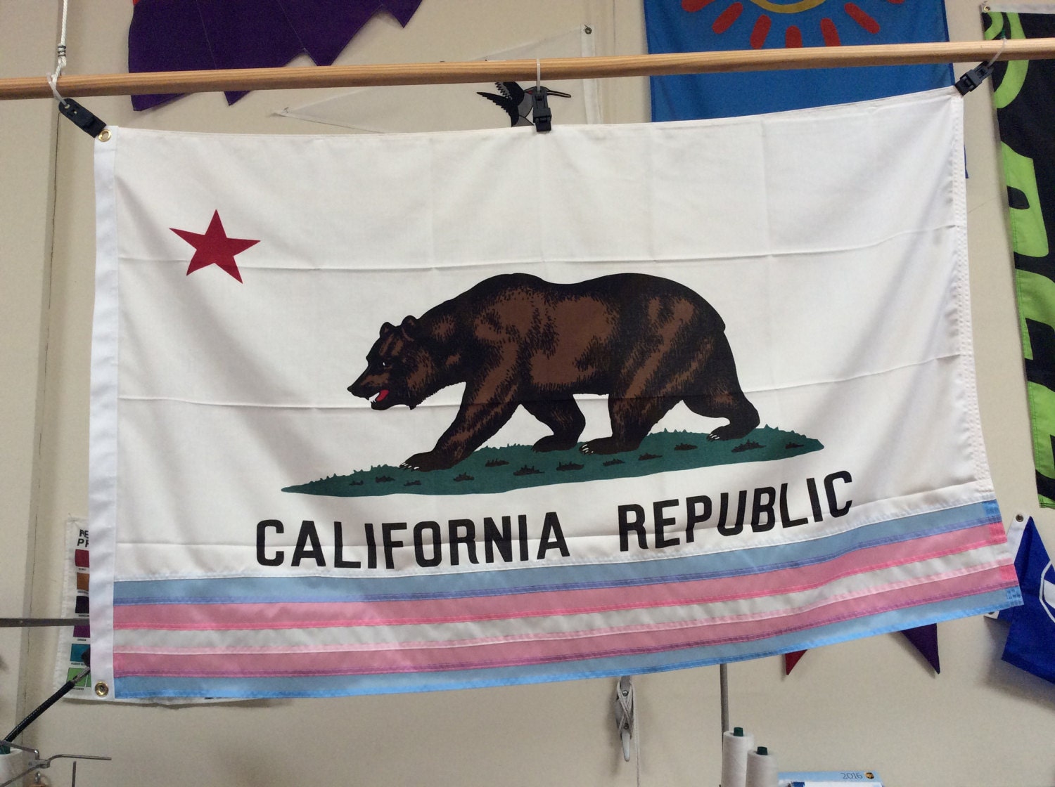 Our California/Transgender flag is hand stitched and sewn in our flag shop in San Diego CA.