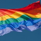The flag represents the transgender community and consists of five horizontal stripes, two light blue, two pink, with a white stripe in the center on the bottom of a California Republic flag.