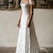 Ivory Lace Wedding Dress: Bohemian Chiffon Skirt, Batwing Sleeves