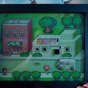 EarthBound Shadow Box - Onett - SNES - Super Nintendo - 3D Shadow Box Acrylic Frame - 12x10 - Video Game Art - Augmented Reality