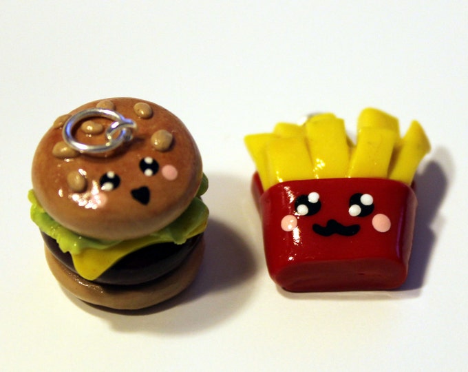 Burger and Fries "Best Friends" Charms - Polymer Clay