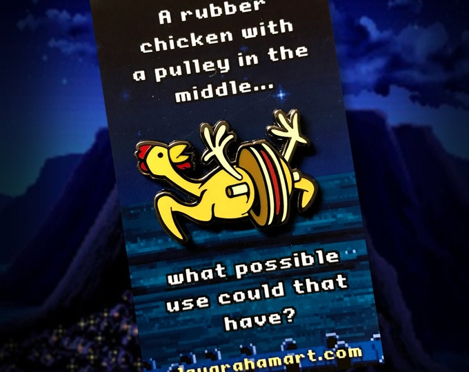 Rubber Chicken with a Pulley in the Middle 1.5" Hard Enamel Pin