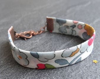 Bracelet, Liberty London Betsy P cuff, flowers, light grey, dark grey and yellow