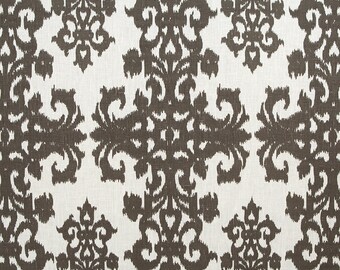 Linen Fabric By the yard Ikat Dark Grey on Ivory