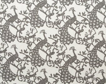 Linen Fabric By the yard Peacock Dark Grey on Ivory