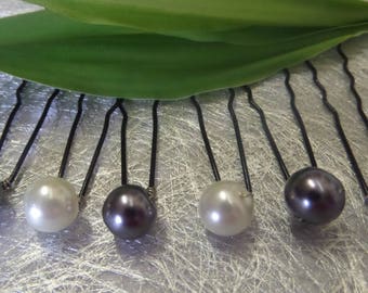 Hair pins, hair pins, hair, Bridal, wedding Pearl dark grey and ivory