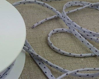 1 m cord spaghetti ruffles 7mm - blue grey with dark grey dots - 4091 7 404
