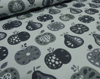 Fabric cotton jersey apples pears fruit grey dark grey garment children's fabric