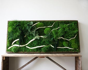 See more40" x 18" Artisan Moss® Real Preserved Plants in Reclaimed Wood Frame Plant Painting®- No Care Green Moss Wall Art.
