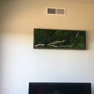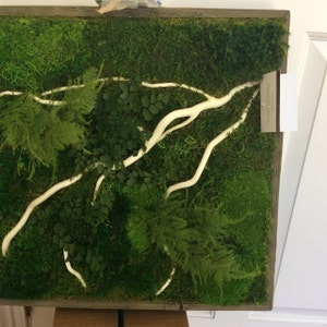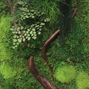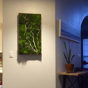 This piece of organic art is even more beautiful in person. I admittedly was nervous not knowing what to expect after placing a large customized order. We all know what fake plants look like and I was worried that it would have that man-made look to it, but I'm here to tell you that it's nothing like that at all. You can't even tell that the material used for this work was preserved--it looks so real to me. Very lush green and even has a natural smell like you're walking through the woods. Everyone has commented on how stunning this is and it brings such a serene and therapeutic feel to our home. I'll never have to worry about coming home to a yellow wall because I am the worst with live plants! It was worth the wait, and I would like to thank Erin so much for the beautiful work she has contributed.