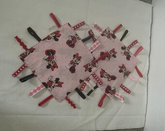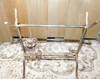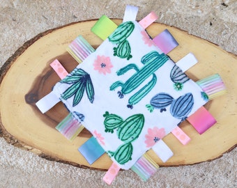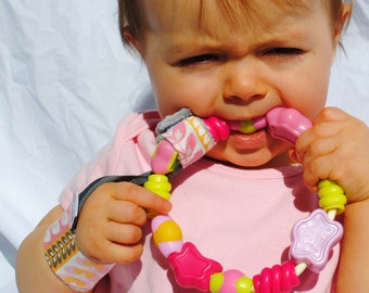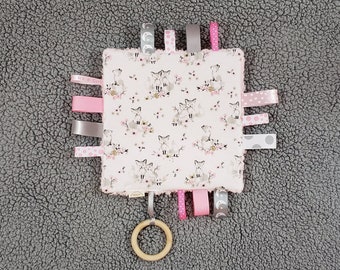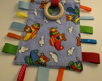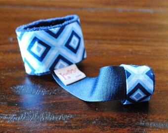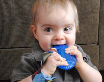 Baby Rattle Holder Gift Set Blue-Brown and Cream Damask Loopy with Crinkle Toy