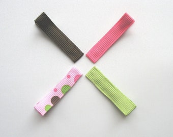 This is for a set of 2 hair bows that will look darling with a pair of jeans or a cute spring dress. This set includes one 2 inch hairbow and one 2 inch tuxedo hair clippie. They are made with 3/8" spring green grosgrain ribbon with polka dots in pink and white. They both measure 2" wide and is on a partially lined, 1-3/4” alligator clip. All of the ends have been heat sealed to avoid fraying.