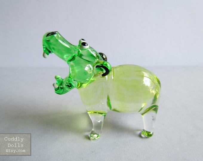 Green Hippopotamus Hand blown Glass Animal Figurine Collectible Gifts Wild Animal Zoo Home Decor Miniature Hippo Figurine Hippo Glass