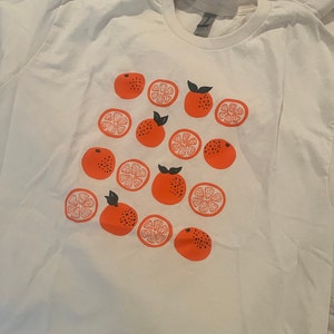 // COLOR: Printed with blackand orange ink, shown here on natural t-shirts. If you are interested in other ink or t-shirt colors, please message us!