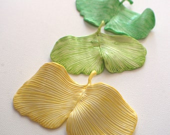 Ginkgo Leaves Wall Sculptures - 3D Ginkgo Biloba Clay Wall Art Set of 3