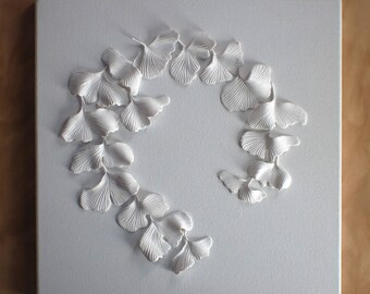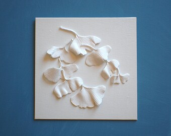 Ginkgo Leaves Wall Sculpture - 3D Ginkgo Biloba Clay Wall Art White on White Decorative Wall Tile