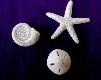 Starfish Sculpture, Sand Dollar Sculpture, Sea Snail Sculpture, Bathroom Wall Art, Beach House Decor, Housewarming Gift, Clay Wall Art