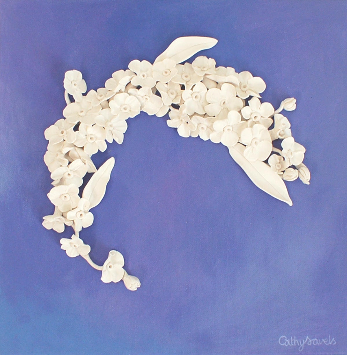 Forget-me-Not Wall Sculpture - 3D Lilac Flower Clay Wall Art Decorative Wreath Shape