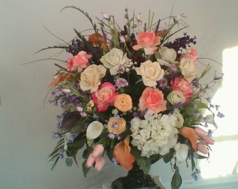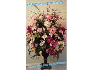 See moreFloral Arrangement, Tall Pastel Luxury Floral Centerpiece, SHIPPING INCLUDED, Elegant Designer Foyer,Dining Arrangement, Wedding, Party
