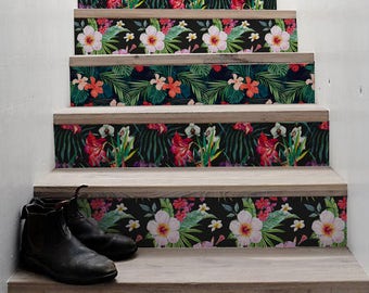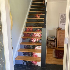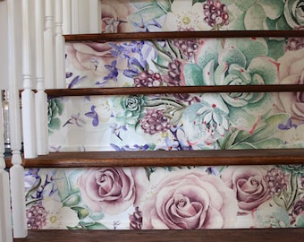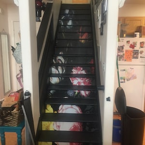 See more10 step stair riser decal, vintage painted flowers stair sticker, floral removable stair riser decor strip, peel and stick stair riser #13R