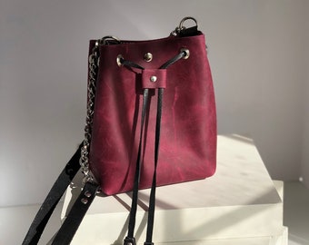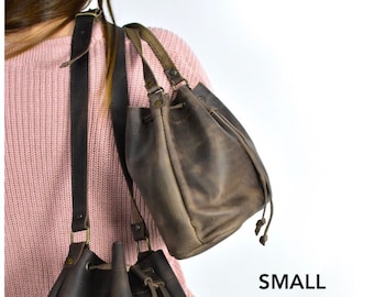 • Small Bucket bag, leather bucket bag, Italian Leather Bucket bag, Made to order Bucket bag, Mini shoulder bag, Rustic Leather bag for women,