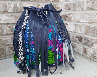 • African Print Fringe Bucket Bag- "Rume" Collection