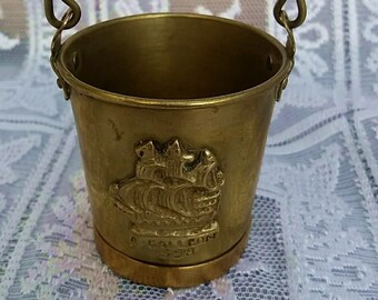 • Vintage small bucket brass / Basket with handle /Basket /Sail/ Ship/Galleon 1558