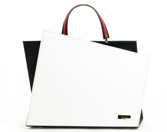 • Leather Top Handle Woman Handbag, Purse White, Black Minimalist Handmade Asymmetric Genuine Leather SQUARE BAG