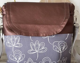 • Bag shoulder bag handbag brown grey floral canvas faux leather
