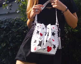 • Small bucket bag made of biodegradable vegan leather, women's gift idea, eco-friendly, handmade, hand-painted, Made in Tuscany, Italy