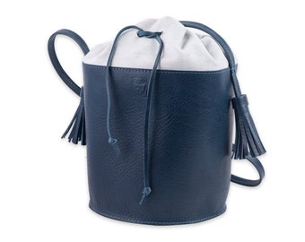 • BLUE LEATHER bucket BAG for Woman Handmade in Italy Full grain Tuscan Leather Bag girlfriends gift