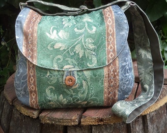 • Floral canvas, buttoned bag, shoulder bag
