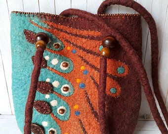 • Handmade felted handbag, Shoulder bag, Wool Purse