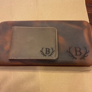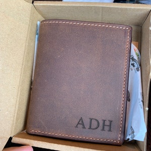 The leather is very nice, it has a worn looks to it which is good. I had it personalized, but the letter press on the personalization shows the edges of the stamp on the wallet, which I didn't like. Overall it's a good product.