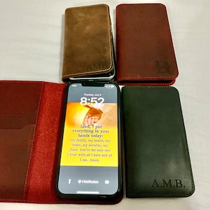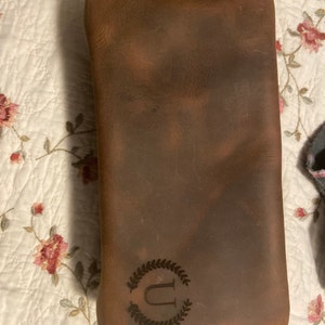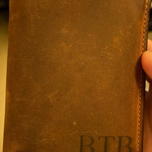 5 out of 5 starsIt's hard to find a well-made leather case in this style. I've had pleather ones in the past and even though I like the convenience of being able to put my id and cc's with my phone and carry everything around with me the fake leather ones wear out fast. The leather on this is cool and rustic and if you scratch it or get it wet, it just looks cooler, imo. Must be somewhat careful when taking your phone out of the plastic holder as it is just glued in. Easy repair if it comes apart. I do wish I had gotten it monogrammed... Oh, well! Btw, shipping was very quick!
