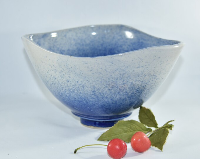 Elegant Blue and White Handmade Pottery Bowl. Serving Bowl. Modern Office Decor