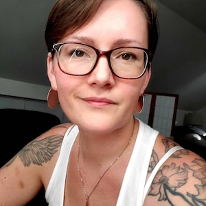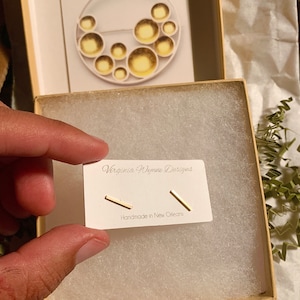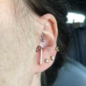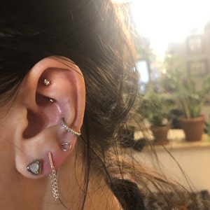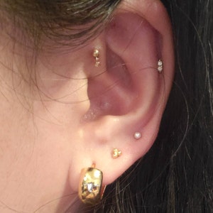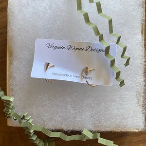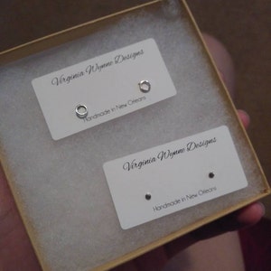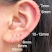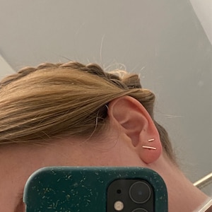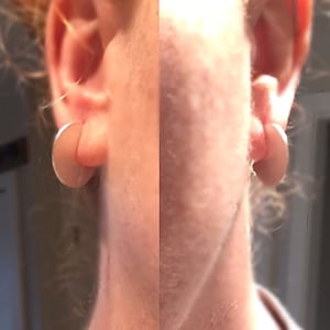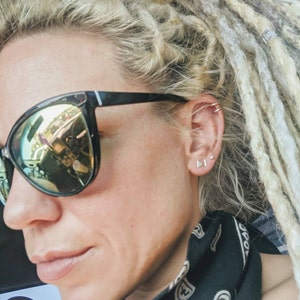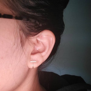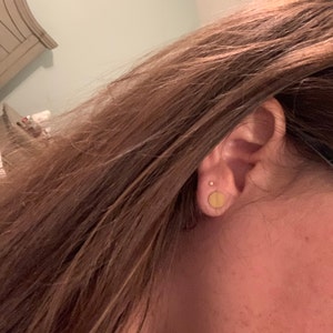 I bought two sets of these earrings to wear as a pair. One sized 7/8 and one sized 5/8, Sterling silver, matte finish. I really love the look! I didn't have a way to measure my earlobe, so they aren't exactly like the one on the model, but I still absolutely love love love them! My request for matte finish received a positive, and prompt reply. Shipping took as long as expected, from the other side of the country. I'm completely satisfied and will purchase from this shop again 😀👍🤗