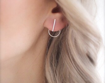 Large Circle Stud Earrings Solid Sterling Silver Pair stud earring Falls trend gold Colored Brass Statement earring Dangle stud minimal 0286