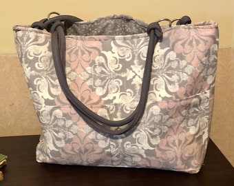 Gorgeous damask peach-pnk, grey, ivory handbag