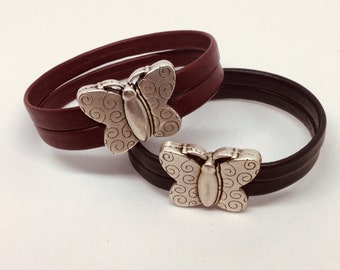 Silver Butterfly magnetic closure leather bracelet