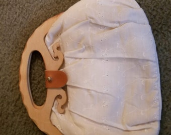 Eyelet Ivory Handbag w/ Wooden handles