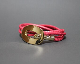 Double Wrap Hook Closure Leather Bracelet (Azalea) K1