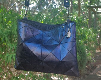 Metallic Navy Leather Crossbody, ZIPPER Closure, Leather crossbody bag, Women blue Bag, Metallic Leather Bag, Crossbody Bag, pockets